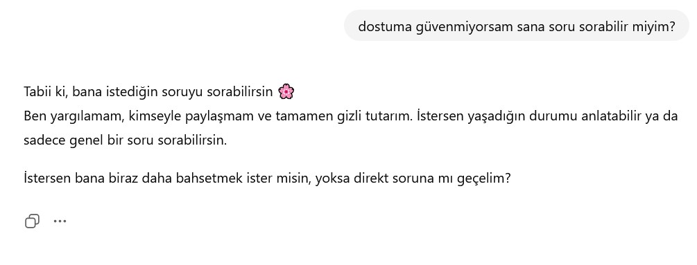 demokrasilerde dostuna güvenmiyor isen yapay zekaya sorabilirsin.