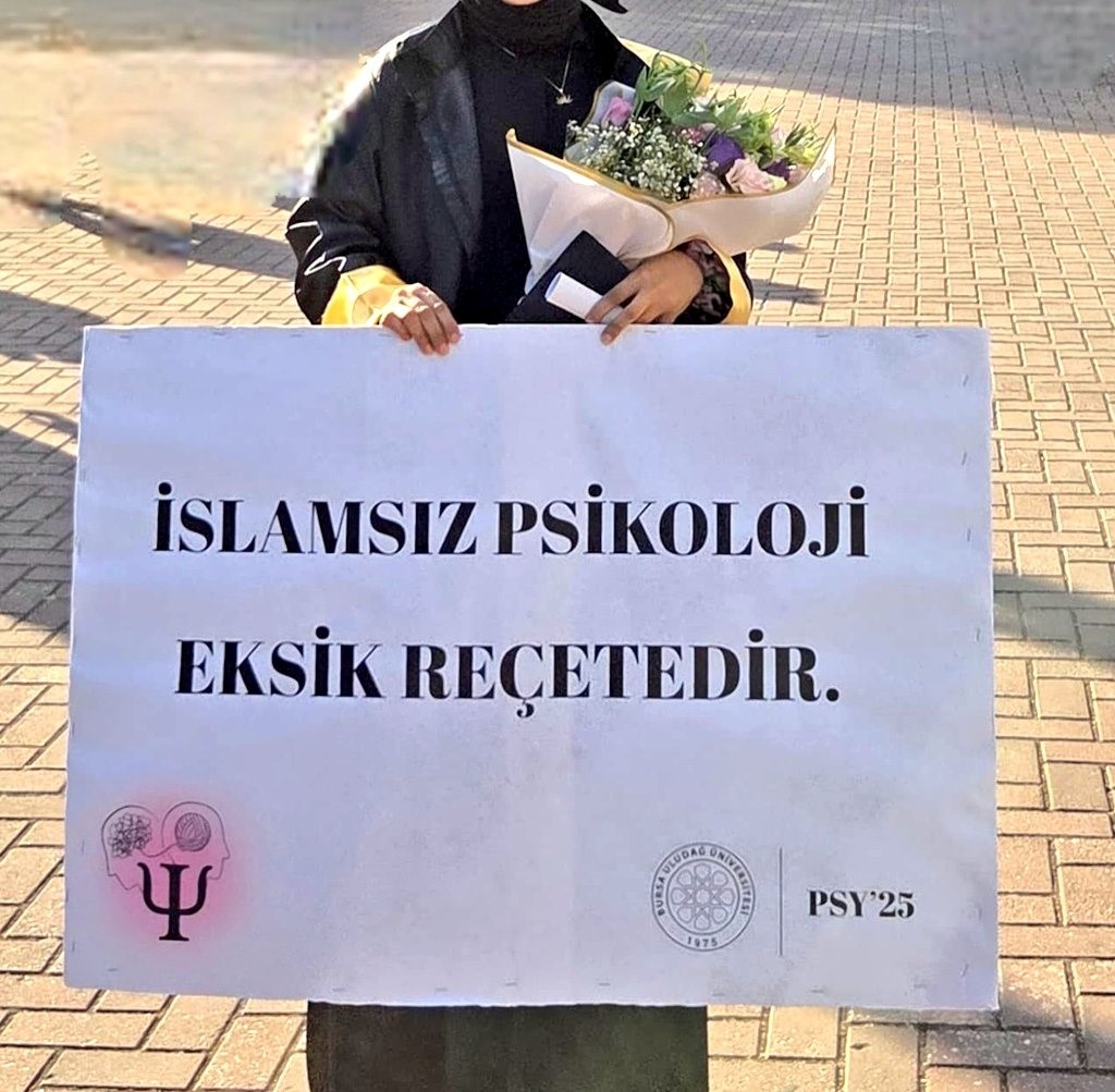 demokrasilerde üniversiteye baş örtüsü ile girebilmiş muhafazakar bir bacı mezuniyet törenine ilişikteki pankartla çıkabilir. islam’ı bir teoriye malzeme edecek kadar şuuru yamultur demokrasi. islamsız psikoloji ile açılan yolda islamsız freud’a islam katacak günlere de belki erişilir demokrasilerde…